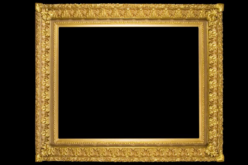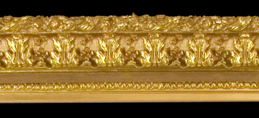 Богато декорированная рама последней четверти XIX в. с крупным растительным орнаментом в виде цветов и листьев аканта, а также с рисунком в виде сплошных параллельных цировок по всему фону.